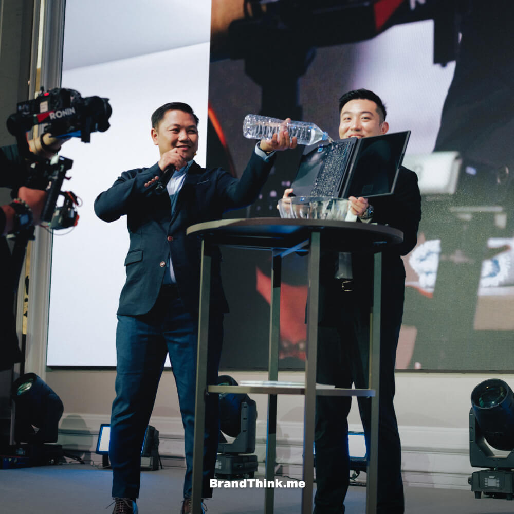 นอกจากนี้ ภายในงานยังมีอีกหนึ่งในไฮไลต์ที่ทำให้ผู้ร่วมงานต่างจับตามอง กับกิจกรรม ‘Expert Challenge’ คือการสาธิตที่ ASUS ยกขึ้นมาโชว์ให้เห็นแบบตรงไปตรงมาว่า ExpertBook แกร่งจริงแค่ไหน ผ่านการทดสอบถึง 7 ด่านความอึด ตั้งแต่การยกเครื่องด้วยบานพับ การกดจอด้วยปากกาและน้ำหนักตัว การทดสอบการตกจากความสูงระดับเอว การห้อยน้ำหนัก 8 กิโลกรัมผ่านพอร์ต LAN ไปจนถึงการกันน้ำบนคีย์บอร์ด