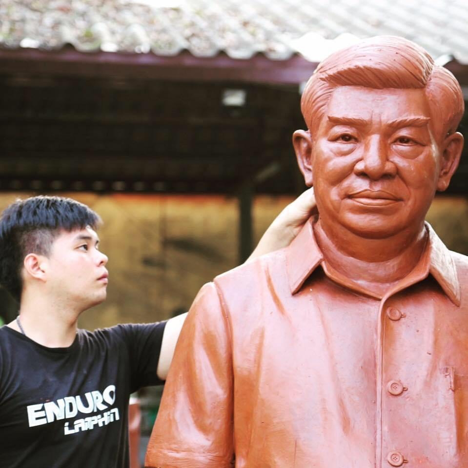 ธูป-ภูธิป บุญตันบุตร ผู้ก่อตั้ง Pan Pan Studio 617 เป็นผู้สร้างสรรค์ช้างกวัก ที่ไม่ใช่แค่ประติมากรรมธรรมดา แต่เพิ่มความคิดสร้างสรรค์ลงไป อีกทั้งยังหล่อและหลอมรวมเทคนิคการหล่อโลหะแบบล้านนาโบราณ ที่ปัจจุบันแทบจะเลือนหายเอาไว้ในชิ้นงานด้วย