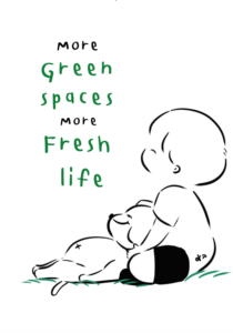 จึงเป็นที่มาของชื่อผลงานว่า More Green Spaces More Fresh Life ที่แปลตามตัวง่ายๆ ได้ว่า ถ้าเรามีพื้นที่สีเขียวเยอะขึ้น ชีวิตของเราก็จะดีขึ้นตามไปด้วย
