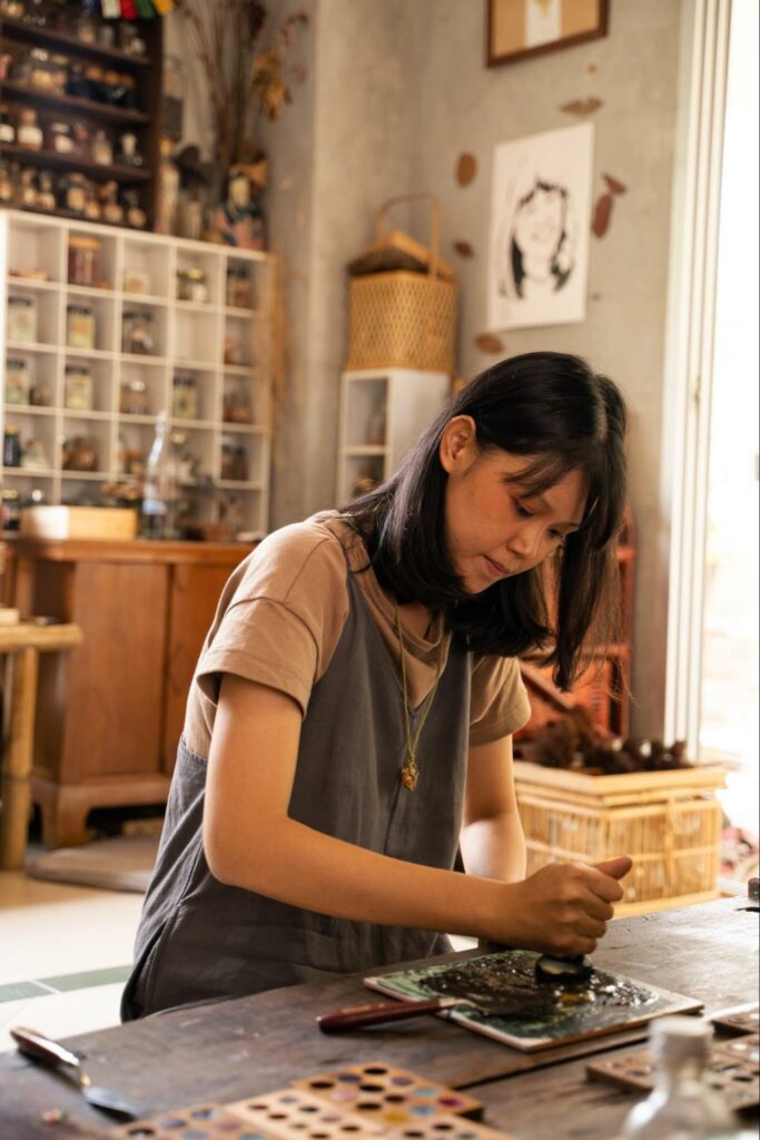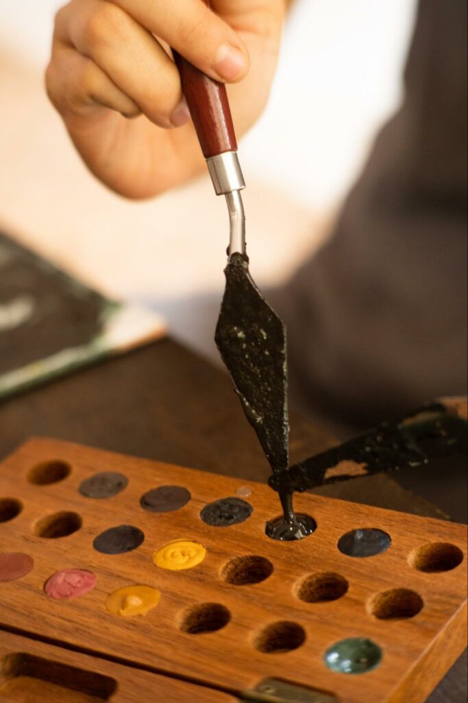 เมื่อเธอเริ่มเป็นที่รู้จักในฐานะ ‘คนทำสีธรรมชาติ’ มากขึ้น จึงเริ่มมีคนสนอยากให้ทำเป็นผลิตภัณฑ์ แต่สำหรับเธอแล้ว ‘สีธรรมชาติ’ เป็นเพียงเครื่องมือสื่อสารที่เธอใช้แบ่งปันเรื่องราวผ่านการสอนเวิร์กชอป สร้างความสัมพันธ์ระหว่างผู้คน และเรียนรู้กลมกลืนเป็นส่วนหนึ่งกับธรรมชาติอย่างแท้จริง มากกว่าการมองเห็นผลลัพธ์ของ ‘สี’ ที่อยู่บน ‘กระดาษ’