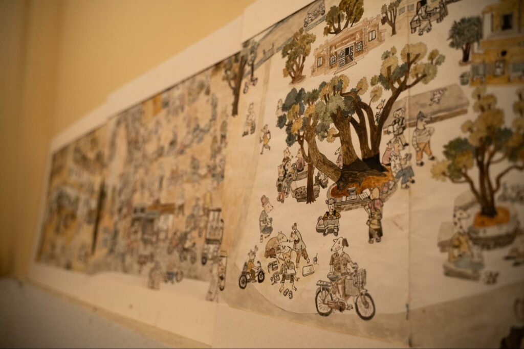 “มหาวิทยาลัยสร้างใกล้กับหมู่บ้านคน เราเลยได้เห็นวิถีชีวิตของคนที่นั่น เห็นคุณลุงนั่งปูเสื่อวาดรูป เห็นการทำน้ำตาลจากต้นอินทผาลัม ข้างๆบ้านที่เราเช่าอยู่เป็นลานนากว้างๆ ทุกๆ เย็นจะเห็นคุณลุงกจูงวัว ควายมากินหญ้า แล้วแกก็จะนอนดูพระอาทิตย์ตกดิน ท่ามกลางเสียงดนตรีไกลๆ ข้างหน้าบ้านมีคนขายมะพร้าว ส่วนมหาวิทยาลัยจะมีต้นไม้ต้นใหญ่ไว้สำหรับนั่งเล่น พูดคุย หรือทุกๆ วันพุธจะมีหนังสือศิลปะมาเปิด ชีวิตส่วนใหญ่ในมหาวิทยาเราจะอยู่ตรงนี้”
