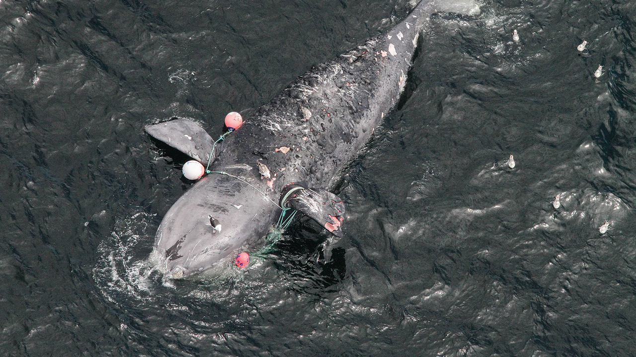 ทุกวันนี้ 25 เปอร์เซ็นต์ของประชากรวาฬไรต์แอตแลนติกเหนือ มีชีวิตพัวพันกับเครื่องมือจับปลาของสหรัฐฯ และแคนาดาอย่างเลี่ยงไม่ได้ ขณะที่ 85 เปอร์เซ็นต์ของจำนวนวาฬทั้งหมดเคยผ่านประสบการณ์ติดอุปกรณ์ตกปลามาแล้วอย่างน้อยหนึ่งครั้ง