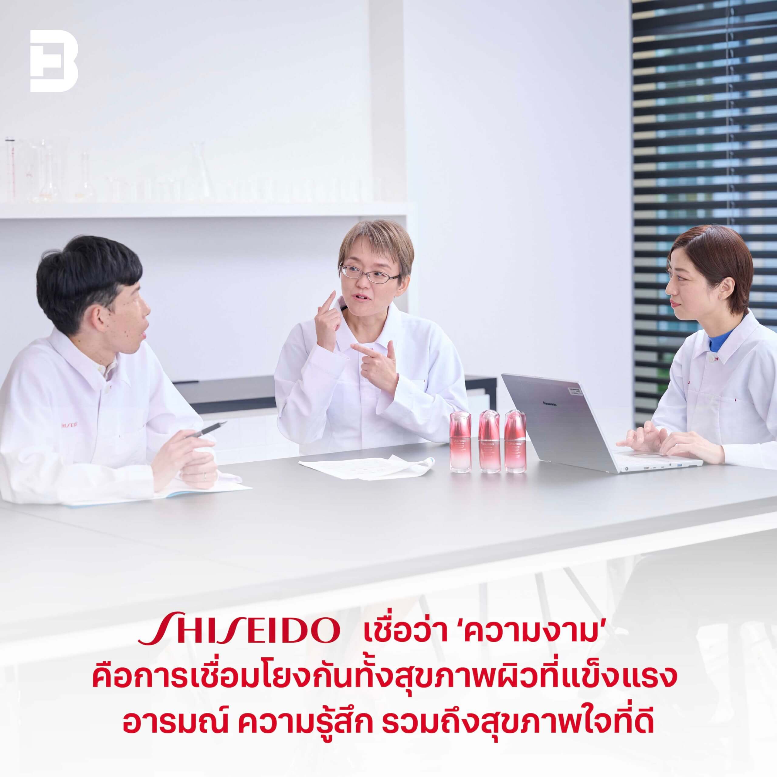 ความเชื่อของแบรนด์ SHISEIDO กล่าวว่า “ความงาม ไม่ได้ถูกจุดประกายจากการมีสุขภาพผิวและกายที่แข็งแรงเพียงเท่านั้น แต่ทว่ายังถูกรังสรรค์และเกี่ยวข้องกับชีวิต อารมณ์ ความรู้สึก หรือสุขภาพใจของมนุษย์อีกด้วย”