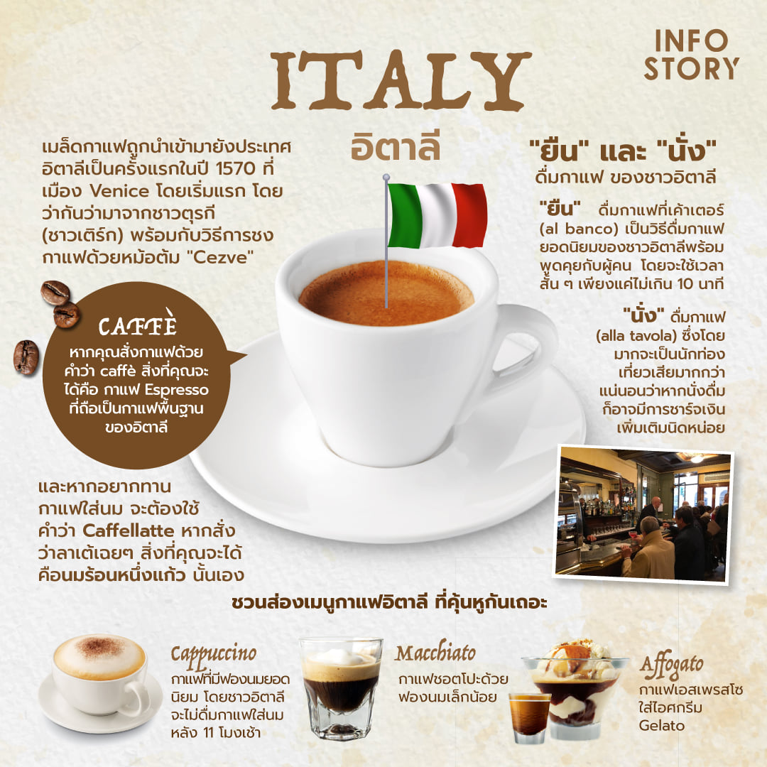 เกร็ดความรู้เกี่ยวกับการดื่มกาแฟในประเทศอิตาลี (Italy)