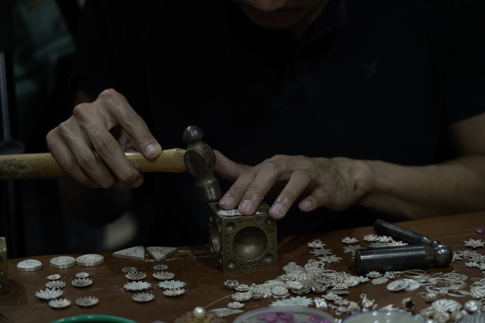 Filigree เป็นงานที่ใช้เส้นเงินขนาดเท่ากับเส้นผมสองเส้น นำมาพันเกลียวแล้วนำไปขดในรูปทรงที่ดัดไว้โดยใช้วิธีการกดลงให้แน่นเพื่อไม่ให้เส้นเงินนั้นเด้งออกมา นอกจากนี้การออกแบบงาน Filigree ยังสามารถสร้างชั้น ซ้อนทับขึ้นมาหลายชั้นได้ เช่นรูปทรงของดอกไม้ แมลง หรืองานโครงสร้างต่างๆ