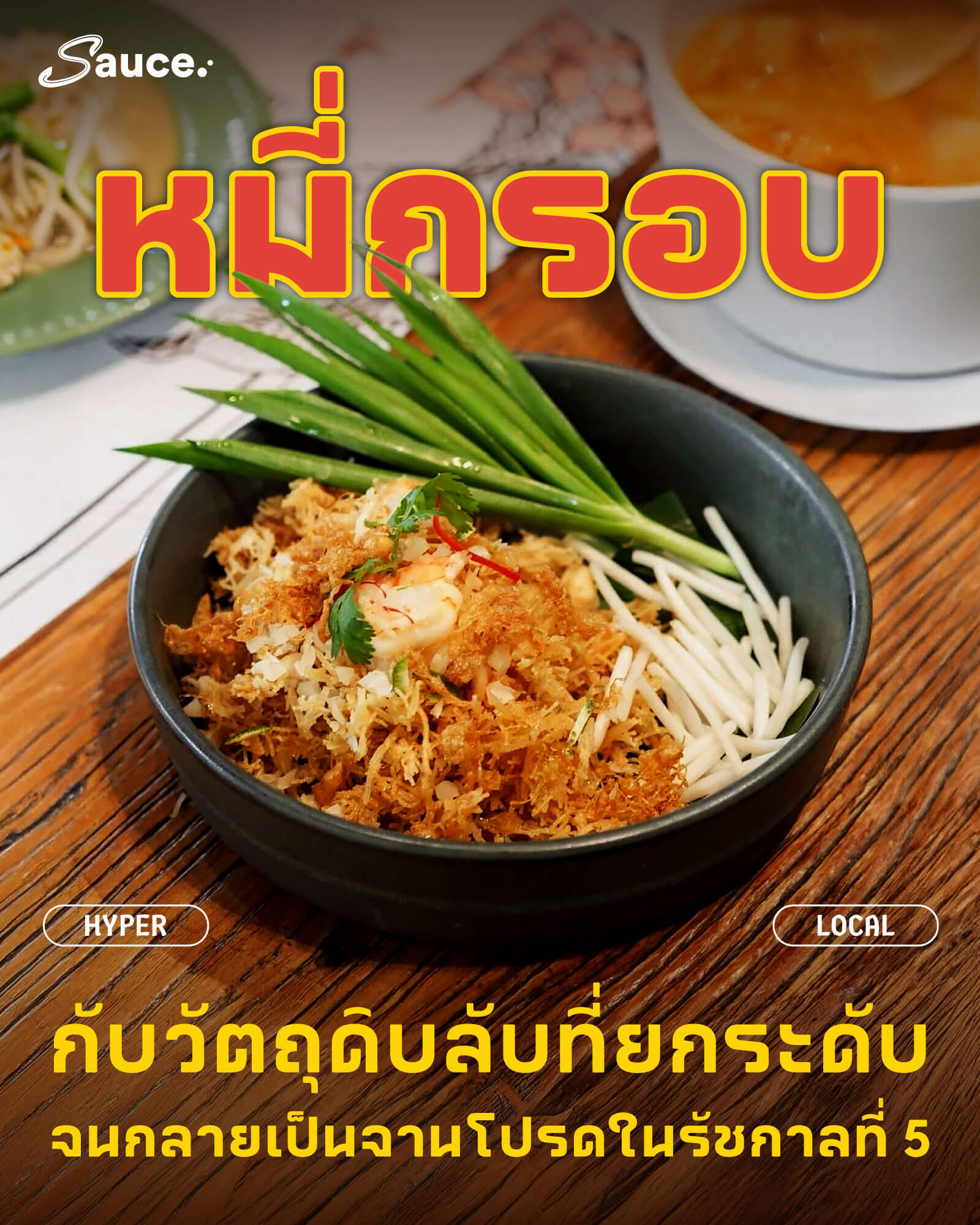 ยังมีอีกเรื่องเล่าที่แสดงให้เห็นถึงความเป็นเมนูทรงโปรดของรัชกาลที่ 5 นั่นก็คือเรื่องราวของ ‘นางเทียม’ ภรรยาของหลวงวัง กรมการกรุงเก่า ที่ได้นำหมี่กรอบเข้าถวายพระองค์ครั้งที่เสด็จประพาสทุ่งบ้านแป้ง บางปะอิน แขวงกรุงเก่า ทันทีที่พระองค์เสวยหมี่กรอบของนางเทียมก็มีพระราชปฏิสันถารว่า “หมี่ทั้งโลกย์สู้หมี่ของเทียมไม่ได้”