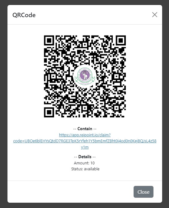 หรือ ในรูปนี้ ผมใส่ว่าจะให้ ECP 10 เหรียญ หรือ 10 คะแนน ให้แค่ คนเดียว ซึ่งเมื่อเรากด Create ก็จะมีรูป QR Code ขึ้นมา