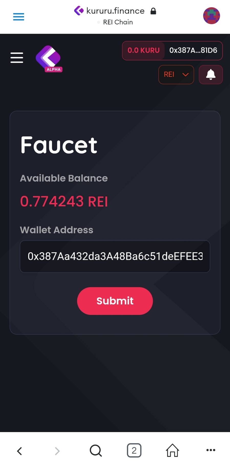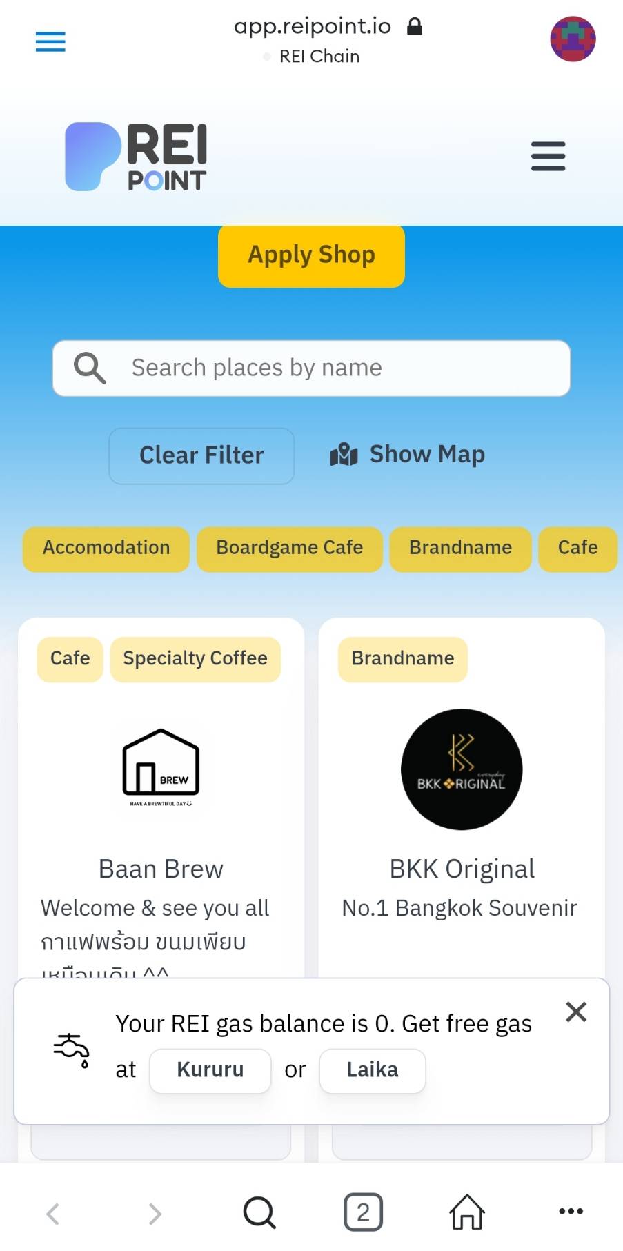 การจะทำธุรกรรมใดๆ บนบล็อคเชน ต้องมีการจ่ายค่าธรรมเนียม หรือ ค่า Gas ซึ่งบน REI Chain ต้องจ่ายเป็นเหรียญ REI ดังนั้น นักศึกษาทุกคน จึงต้องมีเหรียญ REI ติดกระเป๋าตังเอาไว้ ไว้จ่ายค่า GAS ซึ่งนักศึกษาสามารถใช้ Wallet สแกน QR Code ด้านบนอีกครั้ง ก็จะเข้ามาในหน้าเวป REI Point ซึ่งด้านล่าง จะมีตัวอักษรโชว์ขึ้นมาบอกว่า คุณสามารถเอาเหรียญ REI ฟรีได้ที่ Kururu กับ Laika ซึ่งเราก็แค่กด เข้าไป ก็จะเข้าไปในเวป Kururu ก็ทำการกด connect Wallet เราก็จะสามารถ เคลมเหรียญ REI ฟรีๆมาลองใช้งานได้เลย