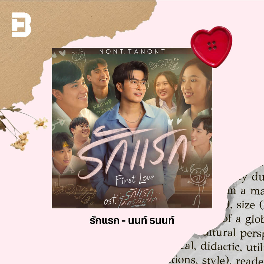 ‘รักแรก’ ของ ‘นนท์ ธนนท์’ เพลงประกอบภาพยนตร์เรื่อง ‘รักแรก โคตรลืมยาก’ โดยรักแรกในเวอร์ชั่นของนนท์ ธนนท์นั้น เป็นเพลงที่พาผู้ฟังย้อนกลับไปสู่ช่วงเวลาที่หัวใจเต้นแรงครั้งแรก เพราะความรักครั้งแรกนั้นบริสุทธิ์และจริงใจ อีกทั้งยังเป็นความทรงจำที่สอนให้เราเข้าใจการเปิดใจ การยอมเสี่ยง ไปจนถึงการเติบโตทางอารมณ์