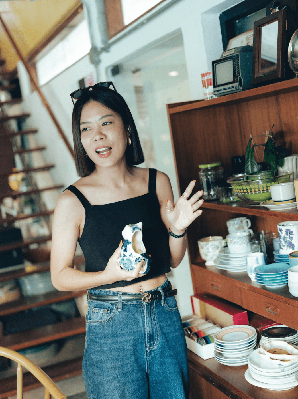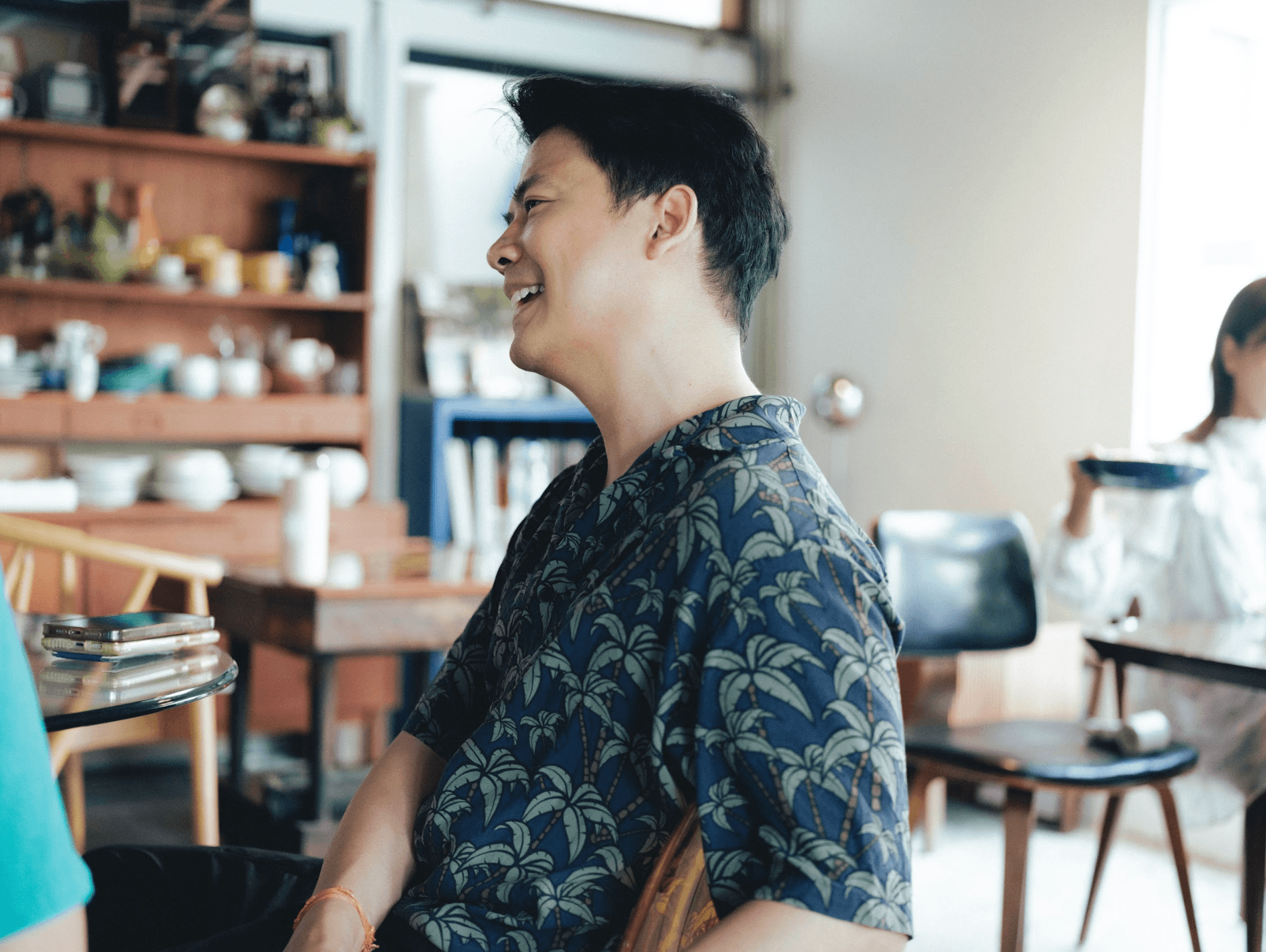 ‘จอยซ์’ เล่าว่าการออกแบบพื้นที่นี้ต้องการดึงความรู้สึกเหมือนอยู่บ้านออกมาให้มากที่สุด เฟอร์นิเจอร์อย่างโต๊ะหรือเก้าอี้ รวมถึงของตกแต่งหลายชิ้นในร้าน เป็นของมือสองหรือของตกทอดจากบ้านเก่าของพวกเขานำมารวมกัน แล้วนำมาซ่อมแซม Upcycle ใหม่ ซึ่งหากใครถูกใจชิ้นไหนก็สามารถขอซื้อกลับไปได้