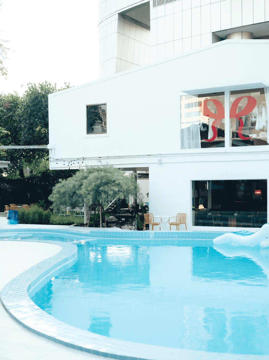 ปัจจุบันที่นี่มีโซนคาเฟ่ที่สามารถเข้ามานั่งทำงานในตอนกลางวัน และบาร์ตอนกลางคืน มีร้านอาหารญี่ปุ่นและพิซซ่า รวมถึงร้านอาหารแบบเดลิเวอรี (อาหารเกาหลี อาหารไทย เบอร์เกอร์) ที่ลูกค้าสามารถสั่งมานั่งทานในร้าน ริมสระหรือในสวนได้อย่างอิสระ