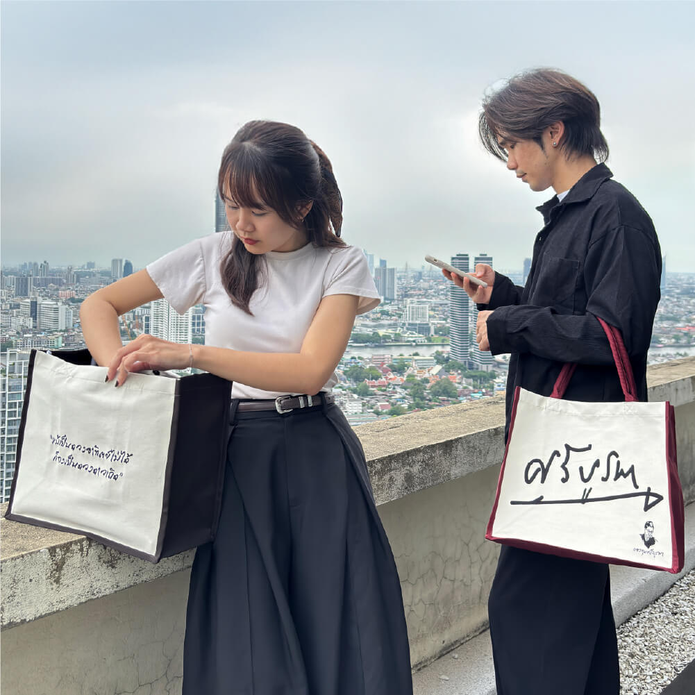 มากกว่ากระเป๋าผ้าทอทั่วไป ‘กระเป๋าศรีบูรพา’ ได้รับการออกแบบภายใต้แนวคิด ‘ผืนผ้าที่บอกเล่าเรื่องใจ’ โดย PASAYA ถ่ายทอดวลีอมตะจากบทประพันธ์ของศรีบูรพาอย่างประณีตลงบนเนื้อผ้า Woven Art Bag รุ่นพิเศษนี้จัดทำขึ้นเพื่อน้อมรำลึก 120 ปีศรีบูรพา พร้อมร่วมระดมทุนสนับสนุนโครงการ ‘ยังศรีบูรพา’ โดยรายได้จำนวน 680 บาทจากราคาจำหน่าย 1,400 บาทต่อใบ จะมอบให้กับโครงการดังกล่าว