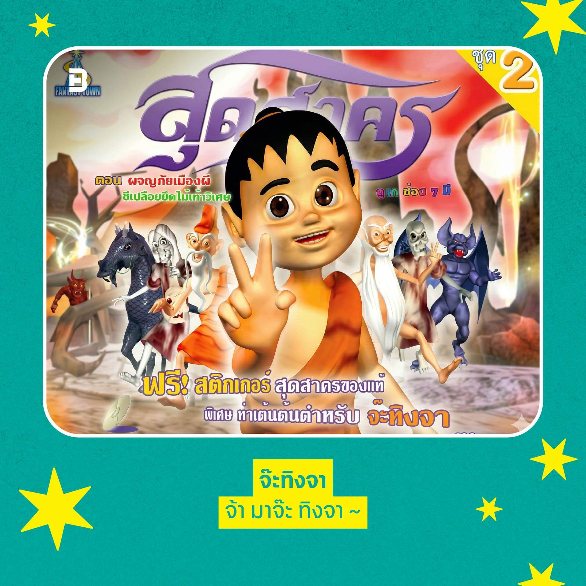 ขาดไปไม่ได้เลยกับเรื่องนี้ การ์ตูนสุดคลาสสิกที่ดัดแปลงตัวละคร ‘สุดสาคร’ ให้เป็นเวอร์ชันใหม่ที่มีเพลงฮิตติดหูทั่วบ้านทั่วเมือง “มาจ๊ะทิงจา มาจ๊ะทิงจา” แค่ได้ยินก็ร้องตามได้ทันที! เรียกได้ว่าเป็นซิกเนเจอร์ของยุคนั้นเลย