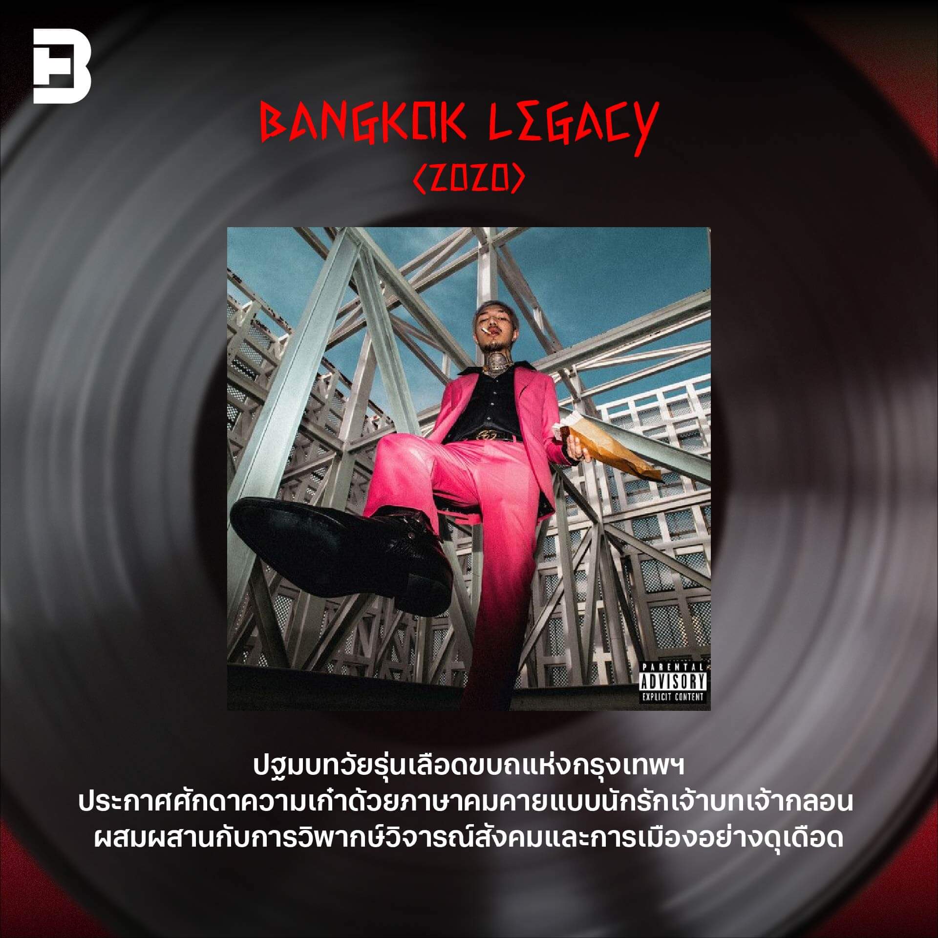 ‘BANGKOK LEGACY’ เป็นอีกหนึ่งอัลบั้มที่สะท้อนถึงวัยรุ่นเลือดร้อนที่เต็มไปด้วยความขบถ แต่ก็ยังไม่วายทิ้งกลิ่นอายความเป็นนักรัก ณ บางกอก เพราะในอัลบั้มพูดถึงทั้งความรักและการเมืองได้อย่างคมคาย