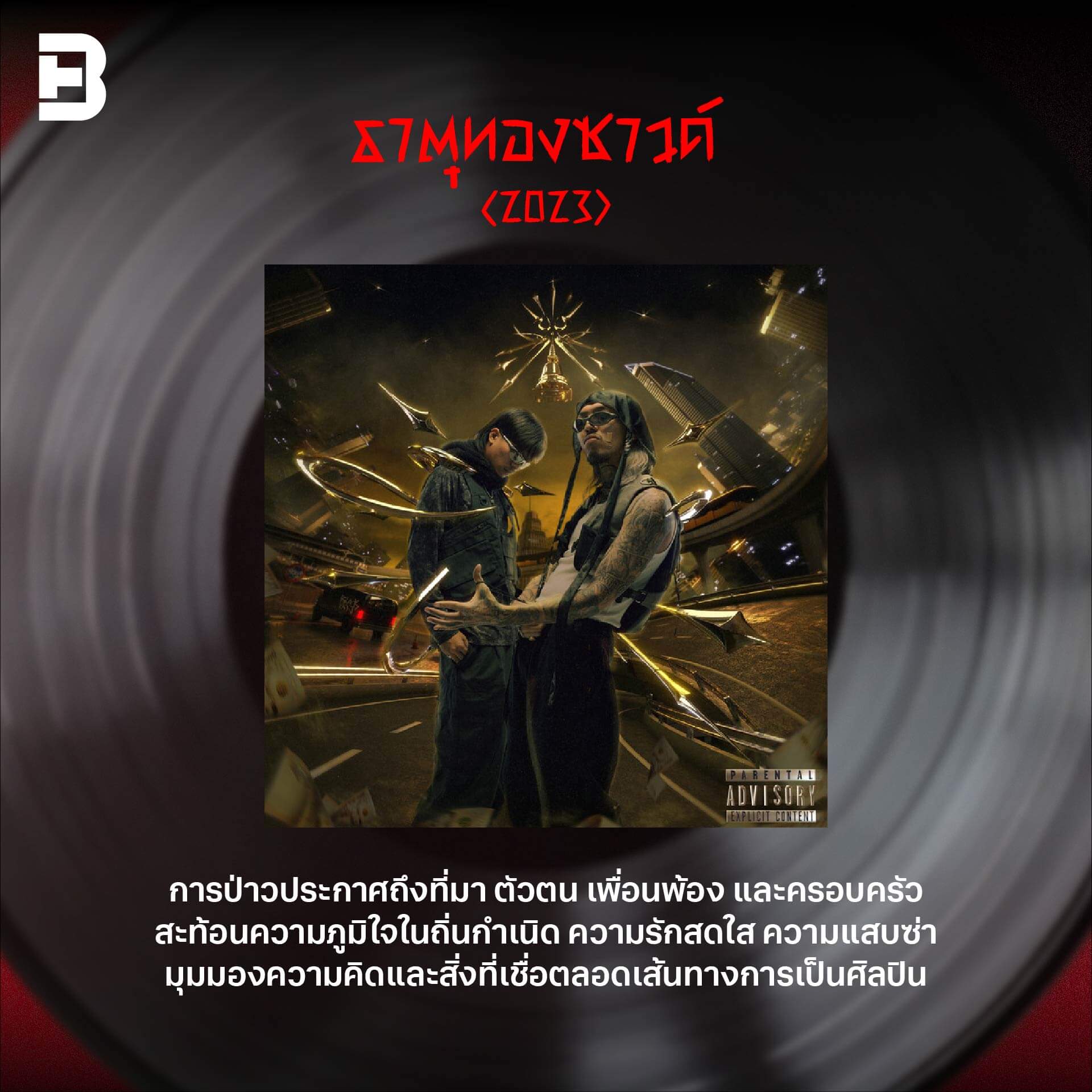 และแน่นอนว่า เพลงที่ประสบความสำเร็จที่สุดในอัลบั้มนี้คือ ‘ธาตุทองซาวด์’ ซึ่งสะท้อนความกล้าหาญทางดนตรีอย่างแท้จริง เป็นการรวมทั้งสามช่า หมอลำ เมทัล และแทรปในเพลงเดียว ทำให้เกิดความสนุกแบบที่หาไม่ได้จากงานฮิปฮอปทั่วไป เพลงปิดอัลบั้มอย่างเพลง ‘เสียงจากเด็กวัด’ คือบทสรุปการเดินทางที่ผสมผสานดนตรีแทรปกับเครื่องดนตรีไทยอย่างกลมกลืน ถ่ายทอดเส้นทางชีวิต การไม่ยอมแพ้ และแรงขับเคลื่อนจากความสนุกในการทำเพลง เสียงของรัดเกล้าช่วยปิดอัลบั้มด้วยข้อความสร้างกำลังใจที่สวยงามและเปี่ยมความหมาย